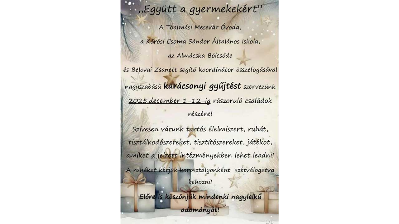 A Kőrösi Csoma Sándor Általános Iskola Szülői Munkaközössége ès Pedagógusai ...