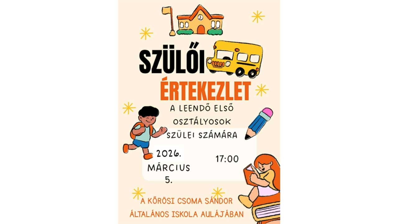 Szeretettel hívjuk a leendő első osztályosok szüleit a szülői értekezletünkre, ahol ...
