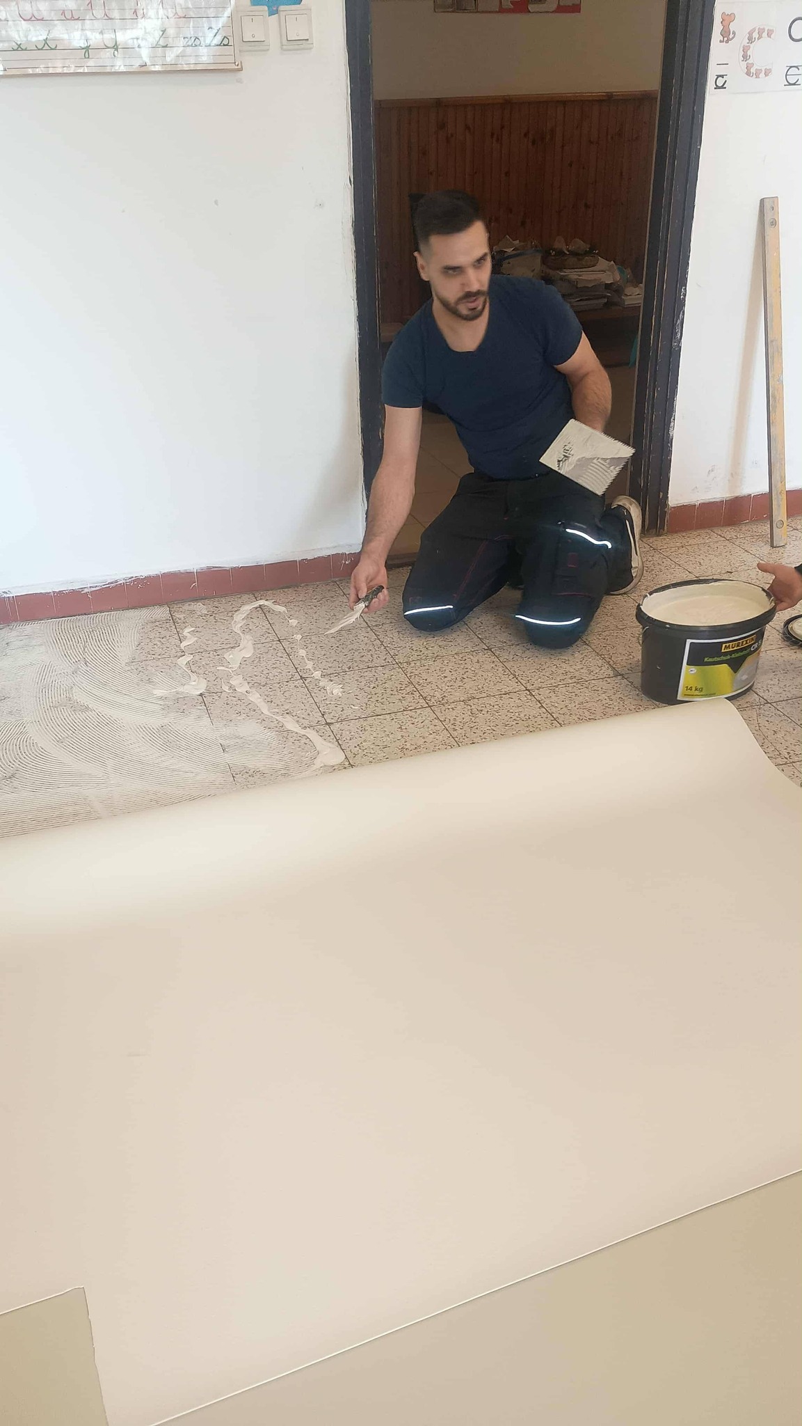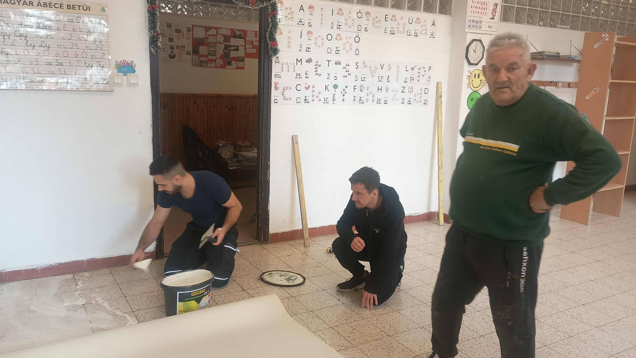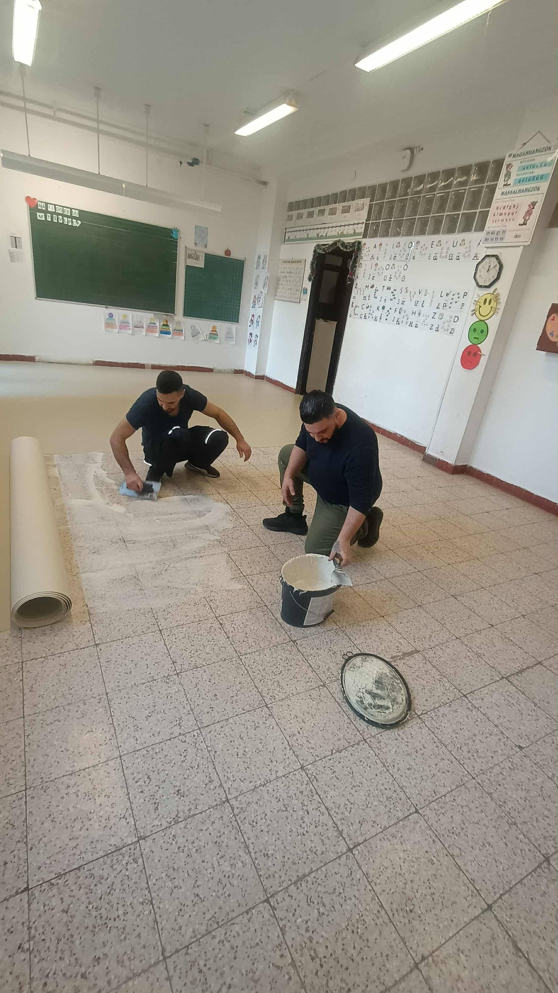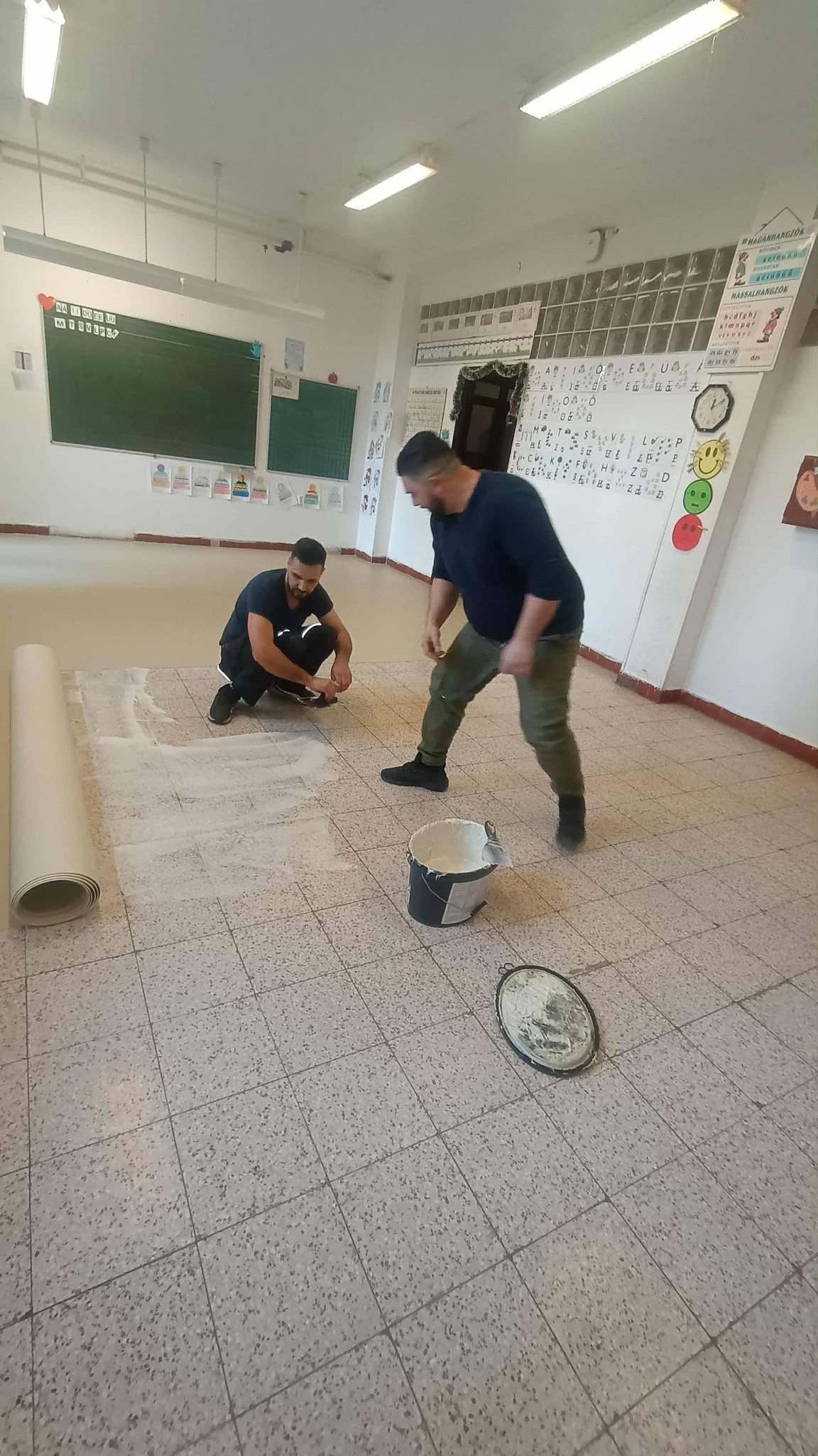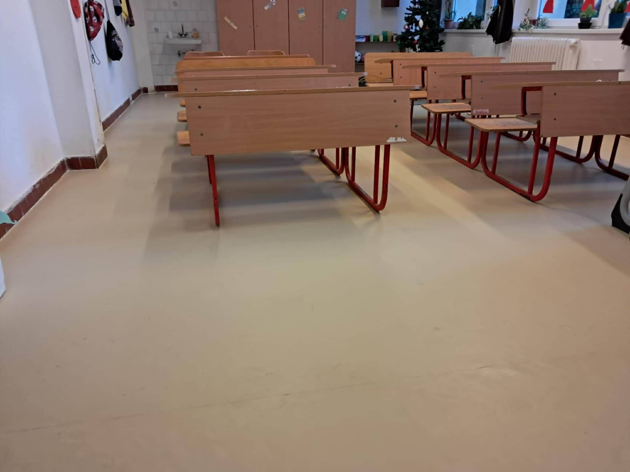 Egy ilyen álmunk volt az is, hogy az eddig köves padlójú tanterem megújuljon, és linóleummal fogadhassa a visszaérkező elsős tanulókat.